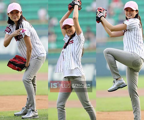 章子怡红到韩国棒球界 比赛开球露底裤(组图)(6)