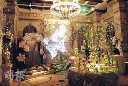“明报”消息,现场播放着鸟声与音乐,又有小朋友与大人喜欢的糖果,好像童话世界。负责场地布置的意大利设计师不获允许透露布置费用,他只说:“主人家满意最重要。”