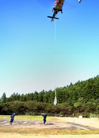▼ 9月20日下午3点多,臼井仪人尸体被用直升飞机运送到下仁田警察署。