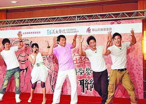 台湾“苹果日报”消息,成龙昨早低调搭高铁到高雄,有6名保镖保护。今年八八水灾,成龙慈善基金会捐1千万元给华山基金会赈灾,当时他因工作无法赴台,昨天他带台湾歌手周蕙、徒弟新七小福义演,与130位老人同乐。