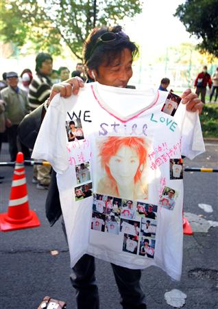 拿着酒井法子T恤的旁听者。图片来源:日本新华侨报网