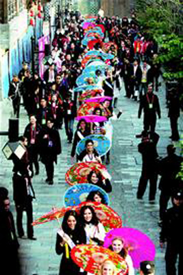国际小姐引万人空巷 古色古香油伞秀韵味十足(图)(5)