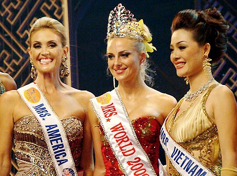维多利亚·拉多钦斯卡娅(中)获得2009年“世界夫人”称号。