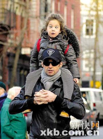 “金刚狼”扛爱女回家 艾娃扮斗鸡眼很有喜感(图)(2)