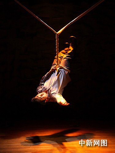 剧中,海蓝色墙围布满整个舞台背景,象征汹涌的浪花和自由的天空;白色的巨大床单悬挂舞台中央,即幻化成长廊;秋千,又是表现人物情欲交织和内心困惑的重要道具。男女主角有大量感情动作戏在悬挂的床单上完成。整个舞台显得清新唯美而富质感,看着很“养眼”。