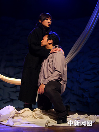 中新网12月11日电 湛蓝的舞台,宽大的白色床单悬挂空中,三对男女缠绵悱恻的爱欲纠葛……由国家话剧院出品“国话之秋”演出季的剧目《海鸥,海鸥》日前在北京国家话剧院小剧场登场。有“戏剧公敌”之称的导演、剧评人杨申,对俄罗斯戏剧大师契诃夫名剧《海鸥》进行大胆解构,讲述了三对不满意生活现状、渴望改变人生和价值但最终难随人愿的男女之间错综复杂的情感故事。赵寰宇、高宝宝等中青年实力派演员加盟让该剧在诸多小剧场戏剧中彰显优势。