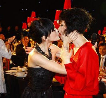 嫣然晚宴众星乱吻 小S亲王菲要老公吻李亚鹏(图)(5)