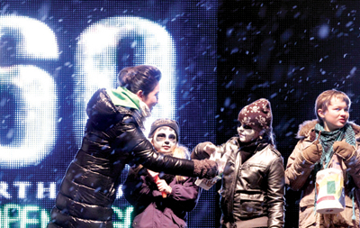“我主持地球一小时熄灯活动的那天,正好经历了哥本哈根入冬以来的第一场大雪,气温降到了零下14摄氏度,而活动是在室外的,我觉得基本上我都是打着哆嗦完成那次主持的,耳朵和手都快冻僵,失去知觉了。”不过,当时的她竟然一点都不觉得冷,和丹麦著名男演员Ken一同全英文主持这次盛会,和现场的群众一起呐喊,看着广场上这么多热爱环保的人聚集在一起,李冰冰说自己有点兴奋过头,“当时我竟然都不觉得冷,甚至感到热血沸腾,非常激动。”不过,事后她还是发现自己冻坏了,“我的右手冻伤了,因为那个拿话筒的手一直都是露在外面的,所以也没办法。” (林艳雯)
