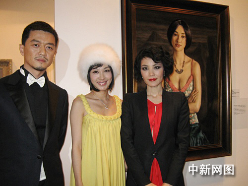 在慈善晚宴之前的拍品展厅上,《云山之间》就作为第一件拍品被陈列在展厅最显眼的位置,而“画中人”李菲儿也成为整个展厅最受欢迎的明星,频频被要求合影签名。当李亚鹏王菲夫妇来到展厅时,李亚鹏向王菲介绍李菲儿,王菲才恍然大悟:“原来你就是这个画里的女孩啊!”