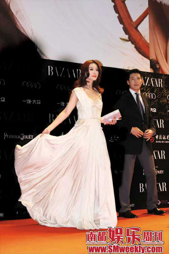 范冰冰挑选的白色褶皱长裙相当不俗,胸前的蝴蝶结装饰恰好形成胸衣,很是性感。缠绕式捆绑晚装裙带着希腊风格,加上范冰冰那标志性的红唇,宛若性感女神。