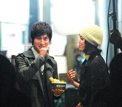 台湾《苹果日报》消息,记者昨直击,仔仔和台湾女模陈庭妮上演冷天吃关东煮取暖戏码,尽管镜头前大口狂吃,等到一喊卡,仔仔立刻转头吐掉关东煮,很不给面子。昨天台北气温回暖,高温摄氏24度,仔仔仍披上羽绒外套,和陈庭妮互相依偎取暖;两人还拍摄在车上的画面,陈庭妮先在副驾驶座装睡,仔仔一吃关东煮她就马上闻香醒来,但下戏后,仔仔却只顾着和男性工作人员聊天,把她晾在一边。