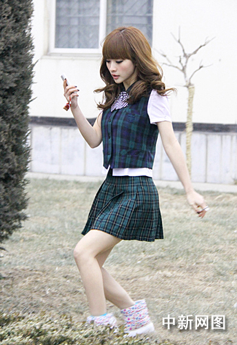 柳岩学生制服清纯“冰冻”出镜 冻僵双手报恩(图)(4)