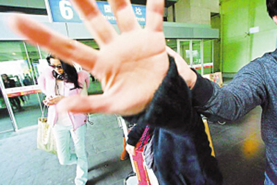 见到迎接自己的工作人员,全智贤非常开心地与对方握手寒暄。不过,在听到记者喊她的英文名“Ginna”后,全智贤前一秒还回以微笑,但后一秒见到镜头,她就飞快地把发髻放下,让头发尽量遮住双颊,然后在一位男助理的“身体掩护”下,由另外两位女工作人员领着,一路低着头快步离开接机大厅。