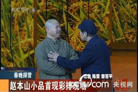 中新网2月8日电 7号,央视虎年春晚进行了第四次彩排,赵本山的小品首次出现在现场,短短15分钟的小品,就赢得了26次掌声。与去年的裙装相比,小沈阳今年的打扮是白毛衣配羽绒背心,显得干练精神,而表现显得中规中矩。