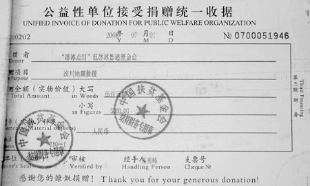 事件回放:地震后,范冰冰以范冰冰工作室的名义向中国基金会捐赠20万元现金。随后又追加捐款10万元现金。