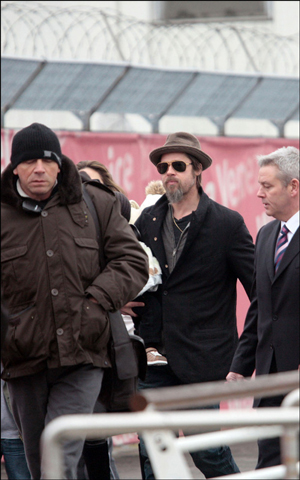 皮特茱莉带龙凤胎外出 小女儿顶毛球帽惹人爱(图)(3)