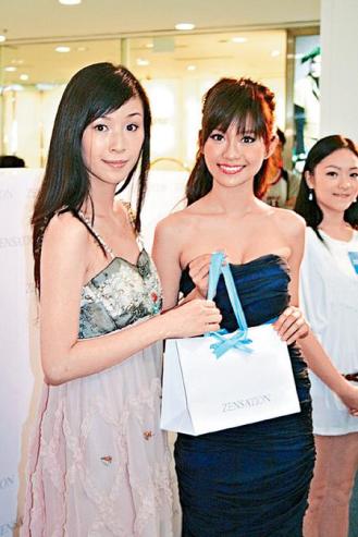 少见性感的杨爱瑾(右)以抬高胸围来增加效果