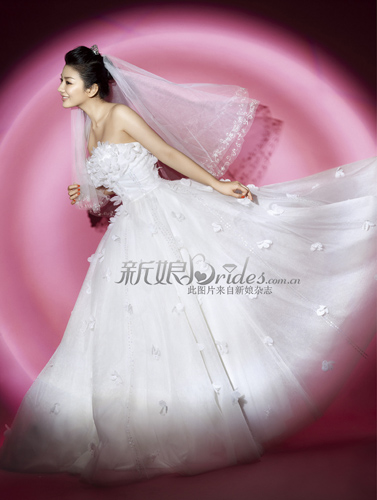 黄奕扮娇艳新娘 穿华丽低胸婚纱大秀美背(组图) (2)