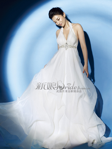 黄奕扮娇艳新娘 穿华丽低胸婚纱大秀美背(组图) (4)