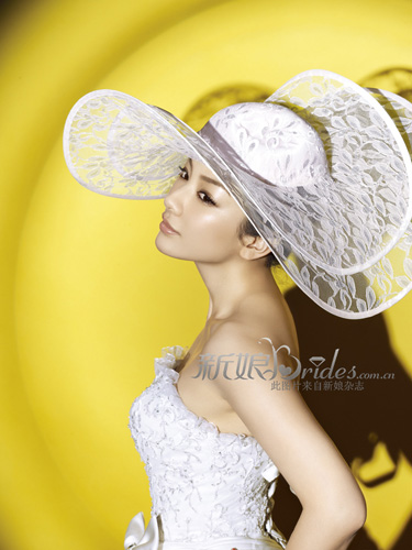 黄奕扮娇艳新娘 穿华丽低胸婚纱大秀美背(组图) (7)