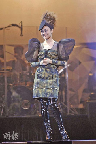 中新网3月9日电 “容祖儿我的女皇音乐会”前晚举行,祖儿穿上宫廷服配合主题,她说:“我这身维多尼亚式女王造型靓不靓?不过这套衫很重,要边唱边除,我会跳13次脱衣舞!”她随后脱去裙侧黑纱、腰带、前腹腰带等,贴身长裙更愈变愈短。