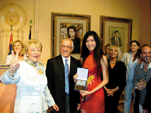 郭琳被希腊外交部长和两位市长授予“荣誉女神”奖