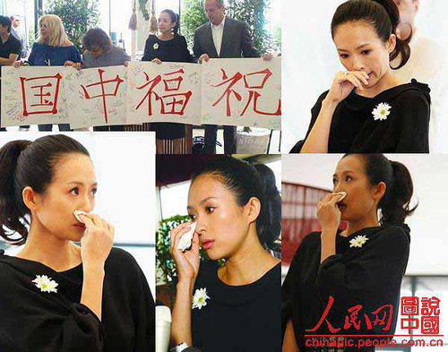 又是纽约又是戛纳又是游艇,又是哭又是读又是做国旗,国际章发着一张张照片回来做通稿,宣传着自己为灾区人民募捐劳心劳力。