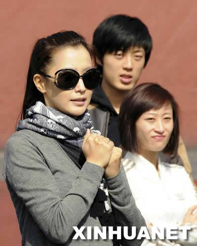 金喜善甜笑捂耳喜亮相 墨镜遮脸难挡大牌范儿(图)(2)