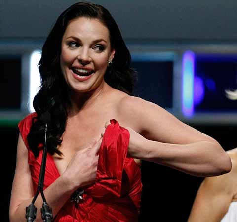 中新网3月20日电 据台湾“联合新闻网”消息,好莱坞女星凯瑟琳.海格尔出席美国Showest电影展销会,在台上领奖时不小心肩带松脱,还好她警觉及时用手遮胸,才没有让春光外泄。
