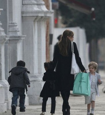 上周六,安吉丽娜·朱莉带着她的三个孩子——6岁的帕克斯、5岁的扎哈拉和3岁的希洛到意大利威尼斯当地的一家游乐场玩。希洛继续着中性的打扮,身穿西装、短裤的她像个假小子一样。
