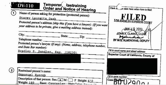 被曝光的法院文件,玛纽在六月离婚官司完成之前,不准靠近斯黛西和她的二个小孩(小孩皆非艾马纽所生)100码以内