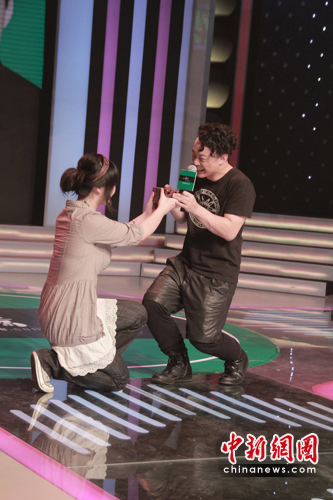 虽然陈奕迅这次已经是连续第三年来到北京开个唱,但他的歌迷还是为他们心中的“歌神”送上了大礼——歌神大印。一位可爱的女歌迷作为代表上台,不知道是不是受到了之前陈奕迅的影响,她在送礼物的时候也是跪地呈上,反应超快的陈奕迅马上做出皇帝的架势说:“平身,平身!”又一次显示了他的机智和幽默。