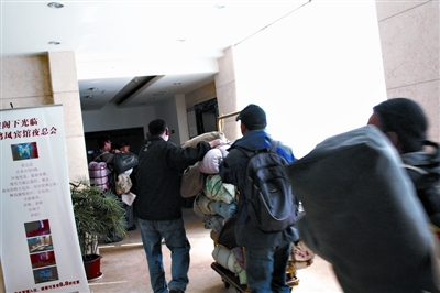 记者跟随张导一行,连喊:“张导。”但张艺谋头都不回,疾步向前,神情严肃,一声不吭。等电梯时,工作人员紧盯着记者手中的相机。记者再喊:“张导。”张导侧目看了记者一眼,又扭过头去盯着电梯。电梯开了,工作人员把记者挡在外面。无奈,记者只好在他们的“目送”下离开。