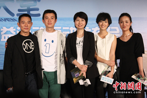 《海洋天堂》(左起:李连杰、文章、导演薛晓路、桂纶镁、朱媛媛)
