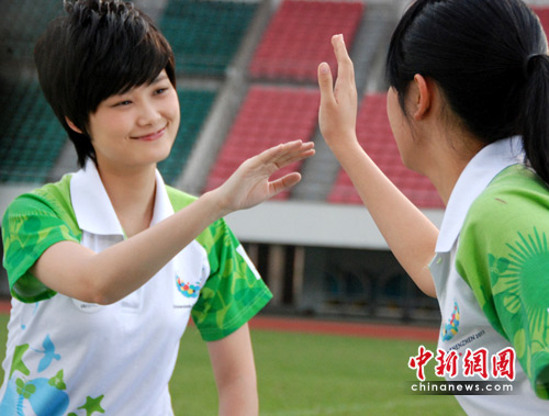 组图:李宇春变身摄影师 与大运会志愿者同拍MV(3)