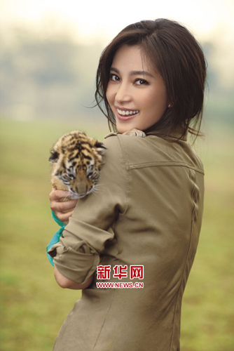 今年是联合国提倡的“生物多样性年”,意在野生动物保护,作为世界自然基金会(简称WWF)的全球大使,李冰冰成为中国首位提出保护“野生东北虎”的明星,并在七月的《心理月刊》杂志封面上演了真人版的“美女与野兽”。据了解,冒雨拍摄的李冰冰在拍摄当天还被三个月大的虎崽抓伤脖子和手臂。