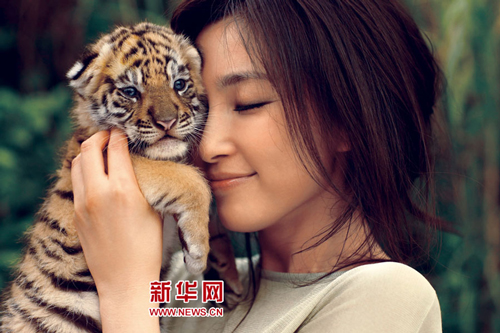 李冰冰冒雨玩幼虎受伤渗血 上演美女与野兽(图)(4)