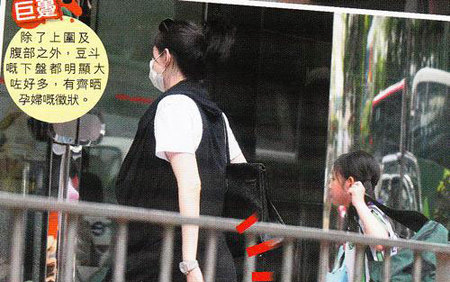 邱淑贞怀第三胎挺巨肚出游 身着黑衣口罩遮面(图)(3)