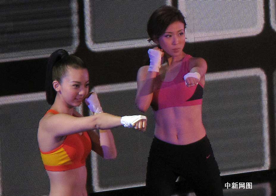 图为参赛佳丽表演活力四射的泰拳健身舞。(摄影:余瑞东)