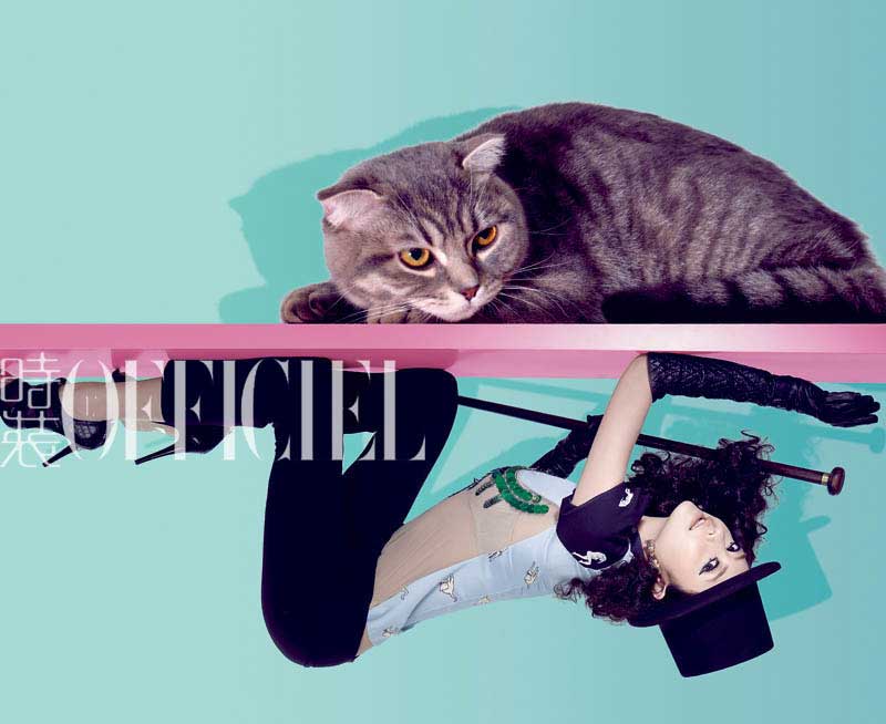 当她化着夸张的猫眼妆扮着鬼脸,你会错觉面前站着的不是一位拥有傲人身材的超级名模,而是一个古灵精怪的可爱女孩。