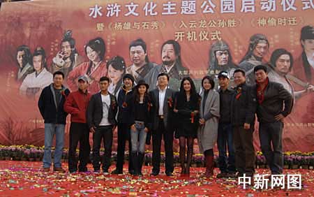中新网11月2日电(蒲波) 昨天(1日)下午,水浒文化主题公园启动仪式暨2009年大型系列数字影片“水浒人物谱”之“杨雄与石秀”、“入云龙公孙胜”、“神偷时迁”等开机仪式在山东梁山举行。“有水浒情结”的山东导演刘信义表示,“水浒人物谱”不一定会有108部,但计划至少拍摄五六十部。