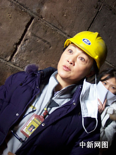 今天拍摄的是王姬和山姆・尼尔饰演的地质学家,首次开启墓道,进入龙庙的一场戏。片场是设在广州街一处宽敞的仓库里,墓道宽约1米5,四周全是深青色的石壁,光线比较昏暗。为了营造神秘的氛围,现场一直在释放烟雾。记者看到,在场演员头带黄色头盔,清一色戴着口罩,“我查过资料,古墓里通常都是有毒气的,这样能让情节更为逼真。”王姬说。