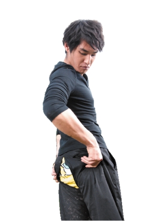 蓝正龙在剧中饰演知名两性作家夏和杰,因为大闹电影首映会,被判到幼儿园服158个小时的劳动役。为了帮小朋友捡布偶,他爬到树上,没想到不慎失足,树枝勾住裤子,狼狈不堪地倒栽葱挂在树上(右上图)。这场戏虽然只有短短的几分钟,却足足拍了9个小时。蓝正龙表示,以前拍广告时曾有吊钢丝的经验,但倒吊却是第一次,“倒吊的时候,头有点昏昏的,而且让我真的体会到什么是眼冒金星。”但最让他难为情的是,“得在镜头面前露出海绵宝宝内裤,让我有点小尴尬。”