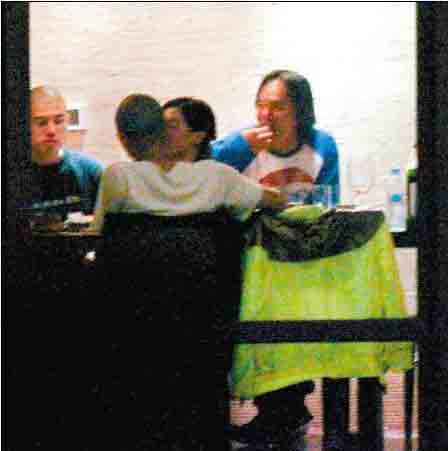 吃到一半,几杯黄汤落肚,张柏芝立即发挥其豪放本色,整个人压在谢霆锋身上,又抱又吻的,完全无视于他人的存在。九点多众人酒足饭饱离开,一路上谈到刺青,张柏芝眉飞色舞,更斗胆扯去黑色低腰牛仔裤,将腰间的刺青展露于工作人员面前,一旁的谢霆锋似乎见怪不怪,最后搂着张柏芝回酒店。