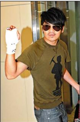 台湾媒体消息,7月9日是曹格生日,因生日当天有工作在身,周一(6月29日)他提前办庆生派对,却再度因喝酒惹祸,溅血送医,并传出他喝多遭殴。昨天他飞买来西亚做宣传,妈妈也随同返会马来西亚,大批媒体守在机场,曹格右手尾指包着绷带,俏皮举起受伤的手,自嘲:“我是招财猫。”