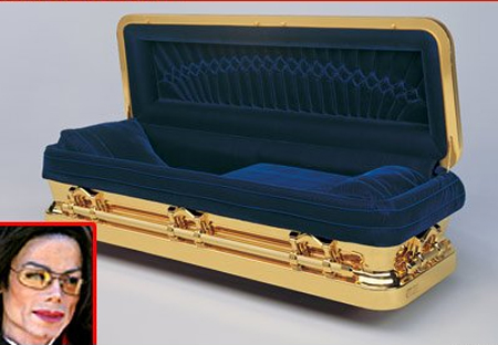 昨天晚上,杰克逊的棺材从美国贝茨维尔棺材公司定制,棺材采用了蓝色天鹅绒内饰和手工抛光的镜面设计。