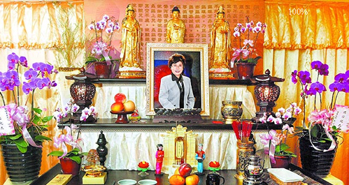 台湾“苹果日报”消息,文英的儿女们在板桥自宅客厅设立灵堂,并放上1张她笑得开朗的半身照,彷佛她的笑语、骂声还在身旁;昨天一早马英九与夫人周美青便赶往吊唁,马英九神情肃穆哀戚,上完香后还一一向家属握手致意,文英的大女儿一度哭倒在周美青的怀抱里,让人十分不舍。干女婿何英哲说,文英住院时,马英九曾想前往慰问,他当时对干妈说:“你如果要让他们来就握紧我的手。”结果她马上松开手,意即不愿劳师动众。