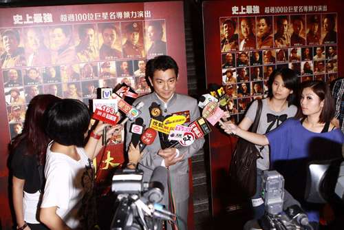 华仔表示现在都有收到生日礼物,是什么不想讲。问到他觉得发生之前的事后,粉丝对他有没有不同?他说:“这些是我同他们的事,我同歌迷会沟通。”他又觉得支持者是否多了?他表示一向都是这样。及后华仔接受电子传媒访问,大赞此片讲中国历史,是很好的教材。谈及歌迷到场支持,华仔表示很多谢他们多年来的支持,觉得感动又温暖,说罢更有点眼红红。