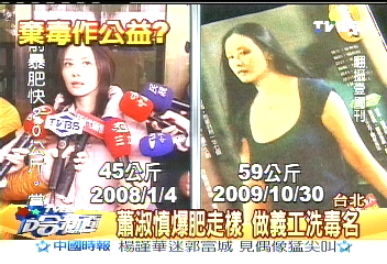 因为两度吸毒被逮,演艺事业几乎停摆的她,也坦言现在固定在庆生诊所附设的涵宇护理之家和创世基金会,两头跑做义工,没有毒瘾,生活非常规律,体重才会从原本40多公斤飙到59公斤。
