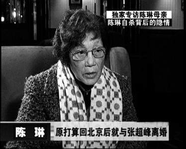 自女儿去世后,一直表现坚强的陈琳母亲,日前接受了电视节目《娱乐现场》的独家专访,陈琳母亲对女儿的最后记忆媒体来源:光线传媒《娱乐现场》访,首度谈到对女儿的最后记忆。她透露,今年国庆节,陈琳曾回老家陪了她一个星期,当时女儿的情绪非常低落,曾向母亲吐露心声,表示回北京之后打算和张超峰离婚,此外,投资的失败也让女儿很懊恼。